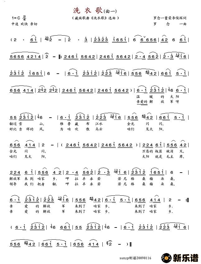 演唱的洗衣歌歌词,洗衣歌最新曲谱.