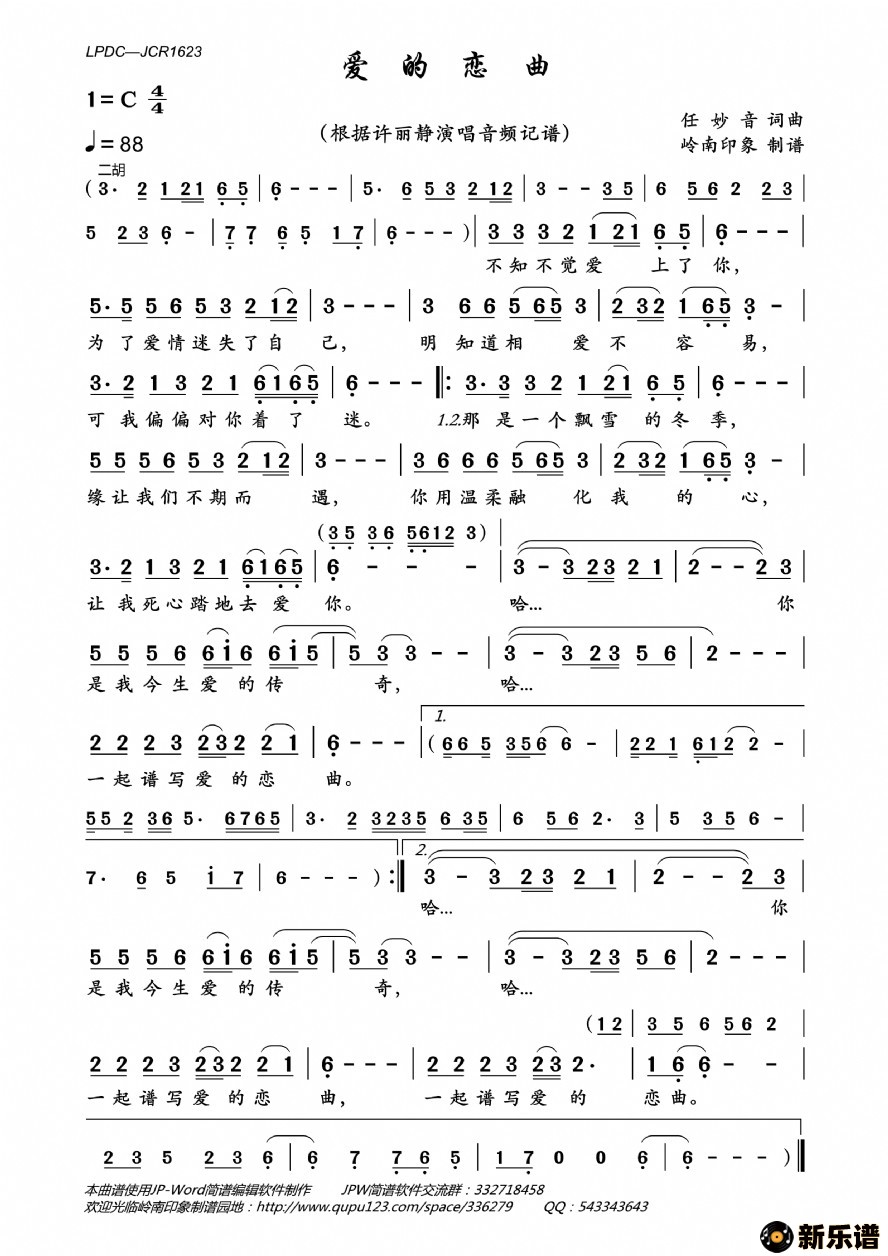 《爱的恋曲》最新曲谱 许丽静-岭南印象制谱