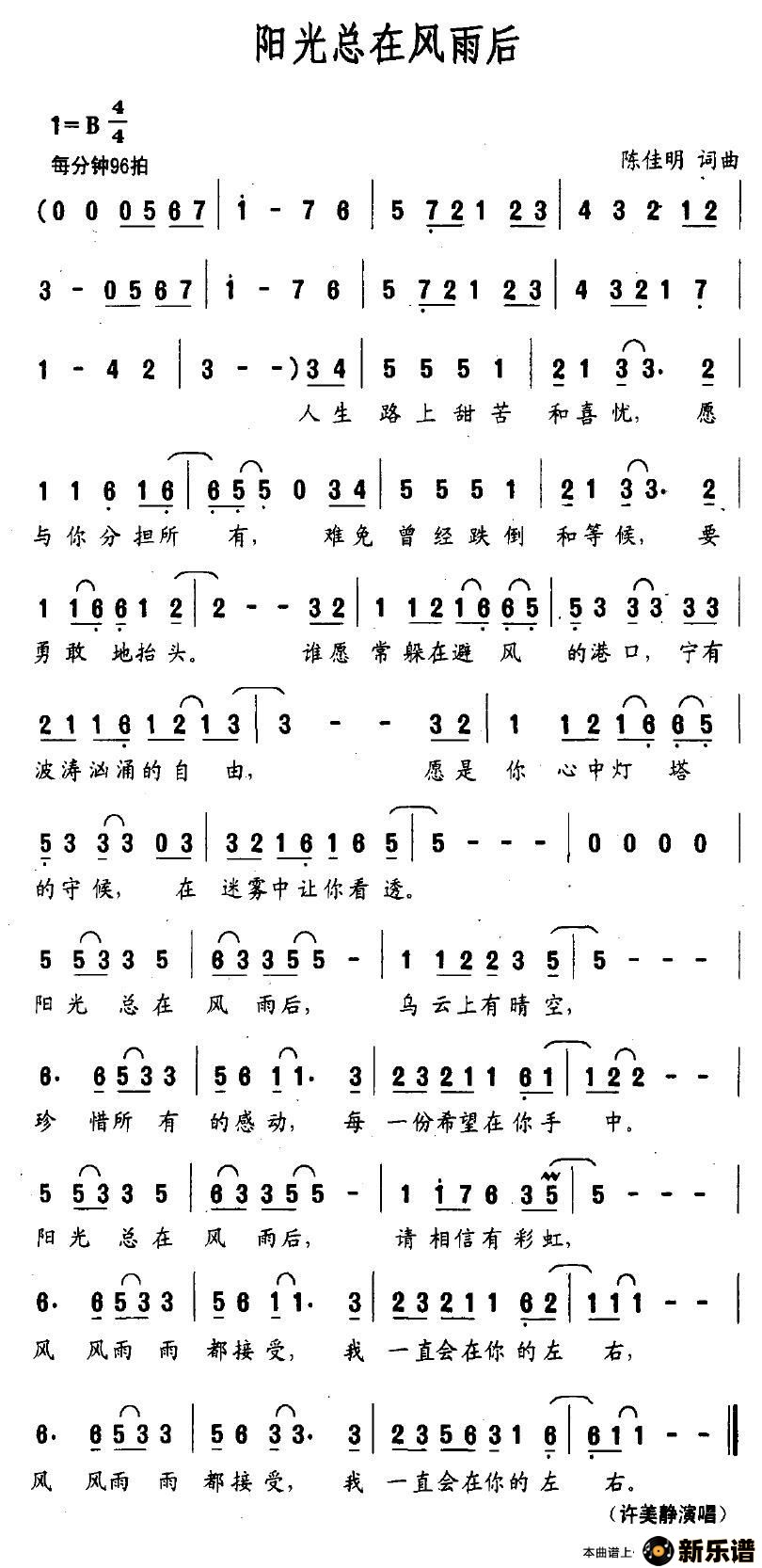 许美静演唱的阳光总在风雨后歌词,阳光总在风雨后最新曲谱.