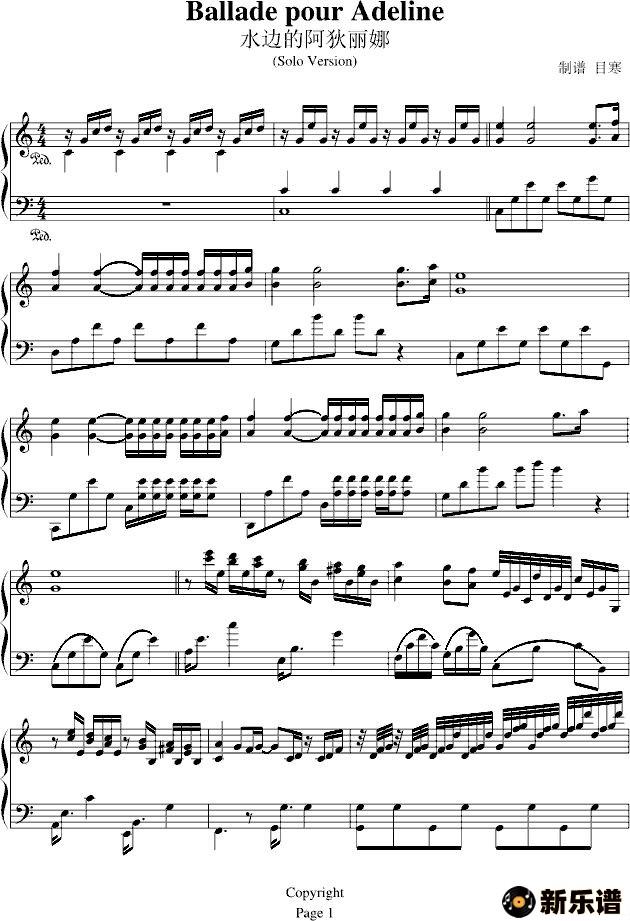《水边的阿狄丽娜》最新曲谱 克莱德曼