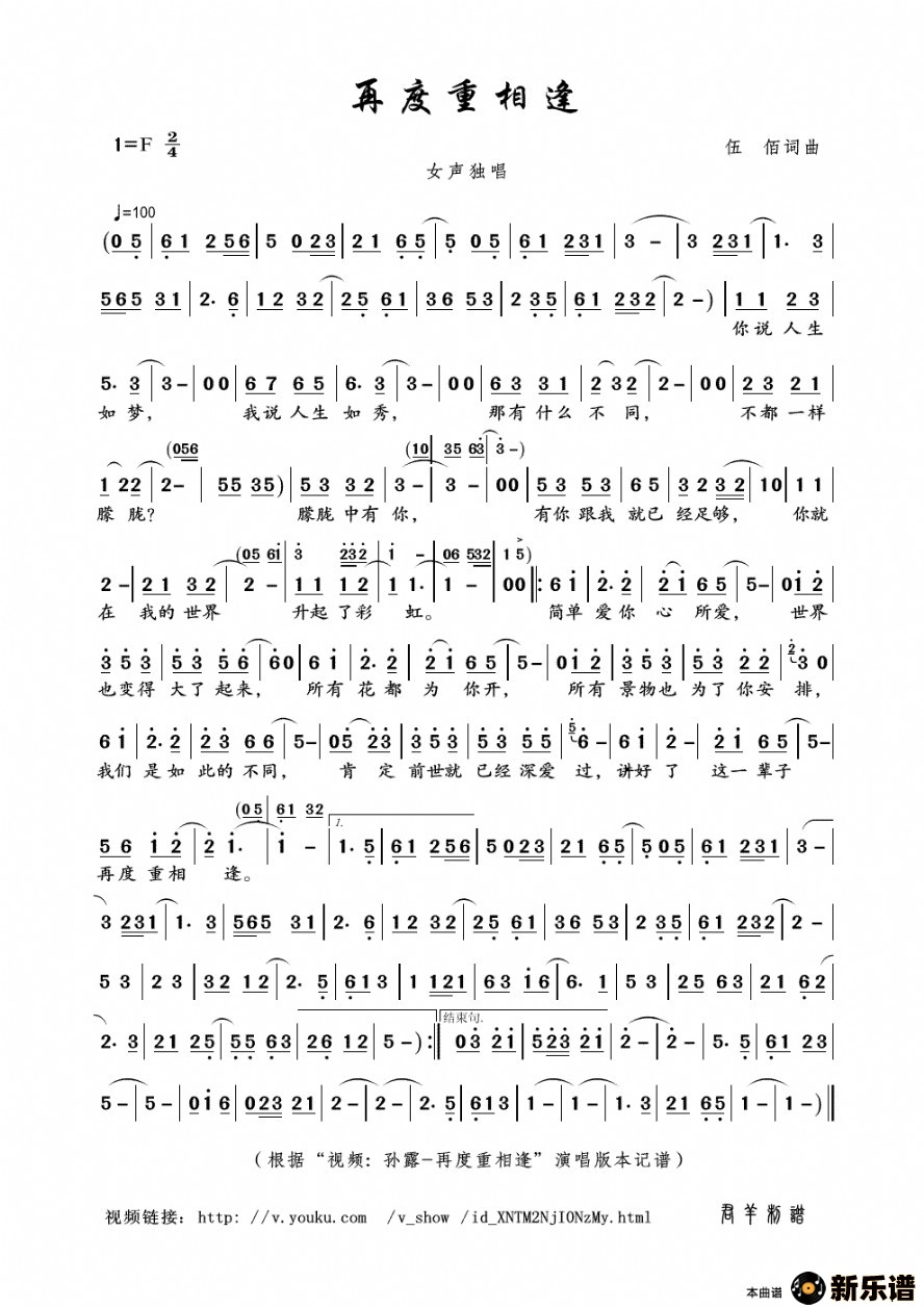 《再度重相逢》最新曲谱 孙露-君羊制谱