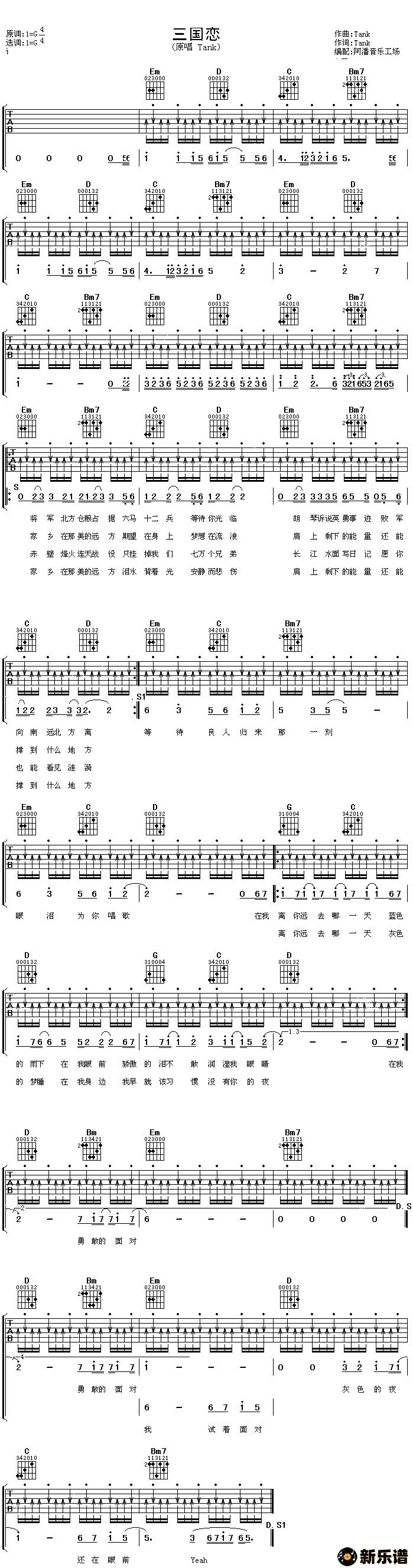 三国恋/Tank 相关曲谱