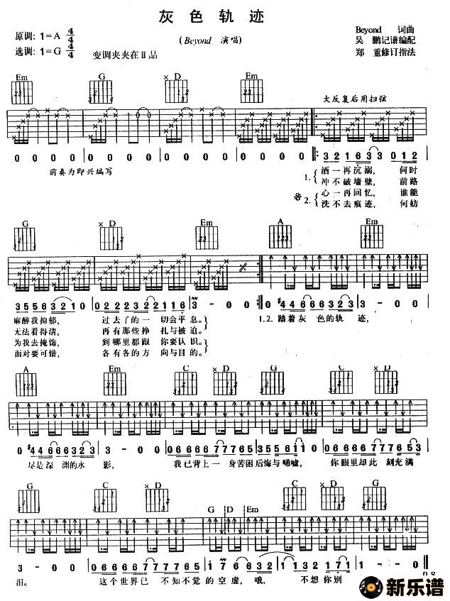 Beyond演唱的灰色轨迹歌词,灰色轨迹最新曲谱.