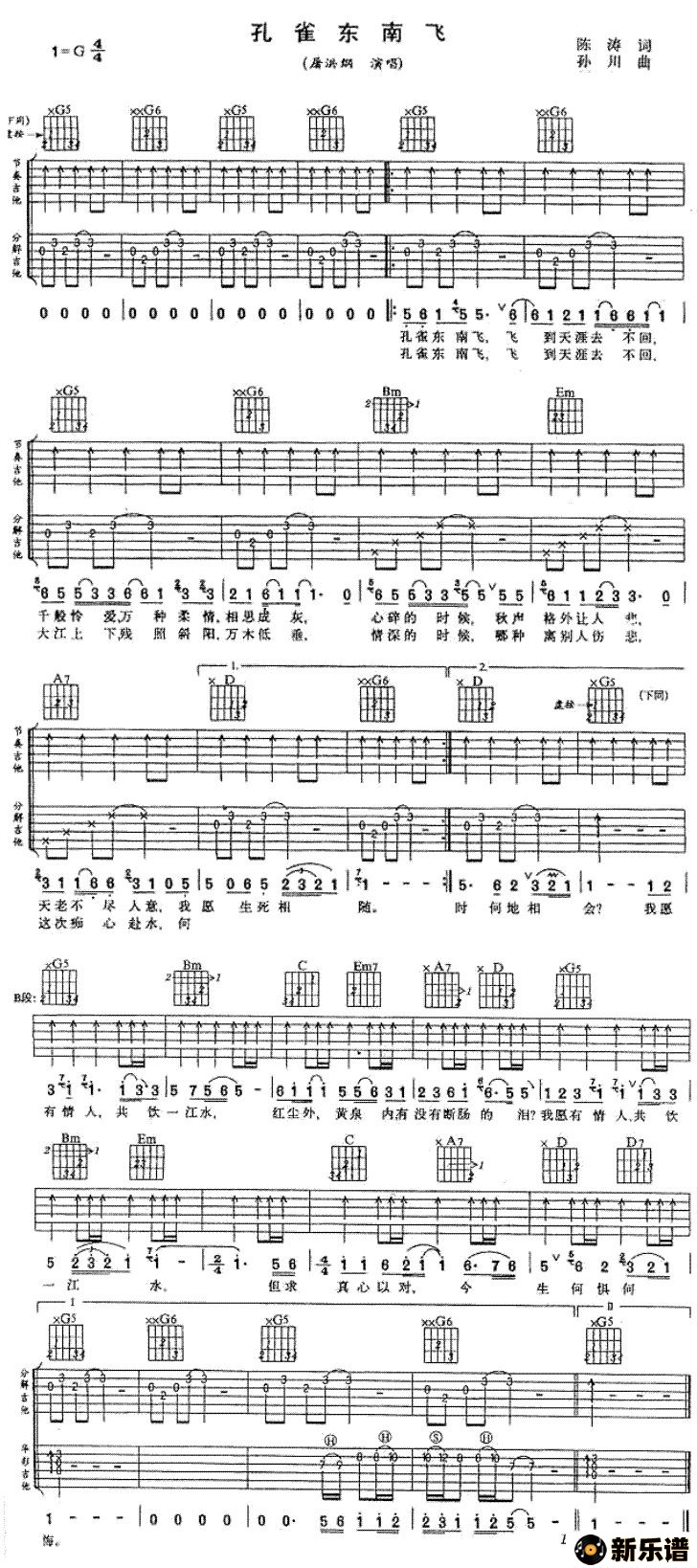屠洪刚演唱的孔雀东南飞歌词,孔雀东南飞最新曲谱.