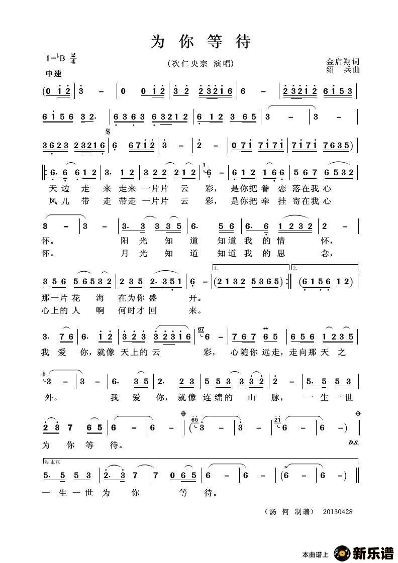 次仁央宗演唱的为你等待歌词,为你等待最新曲谱.