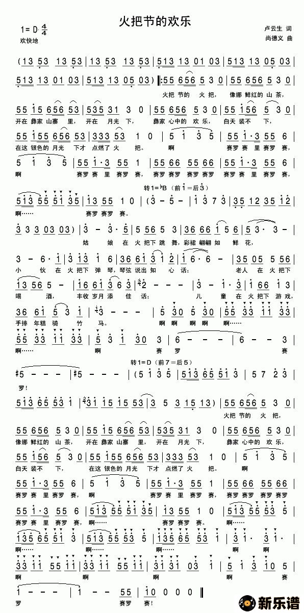 演唱的火把节的欢乐歌词,火把节的欢乐最新曲谱.