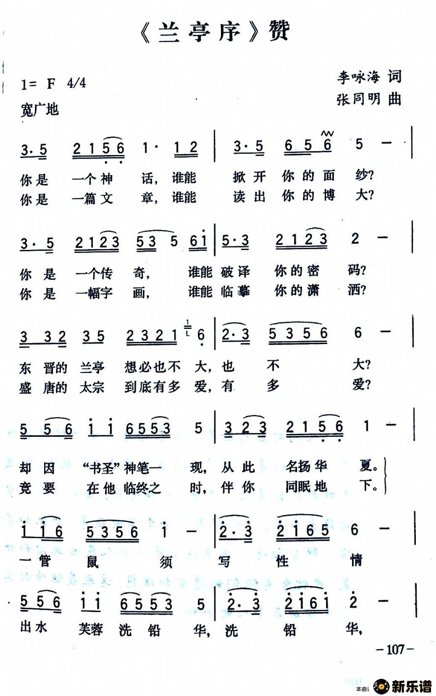 演唱的《兰亭序》赞 歌词,《兰亭序》赞 最新曲谱.