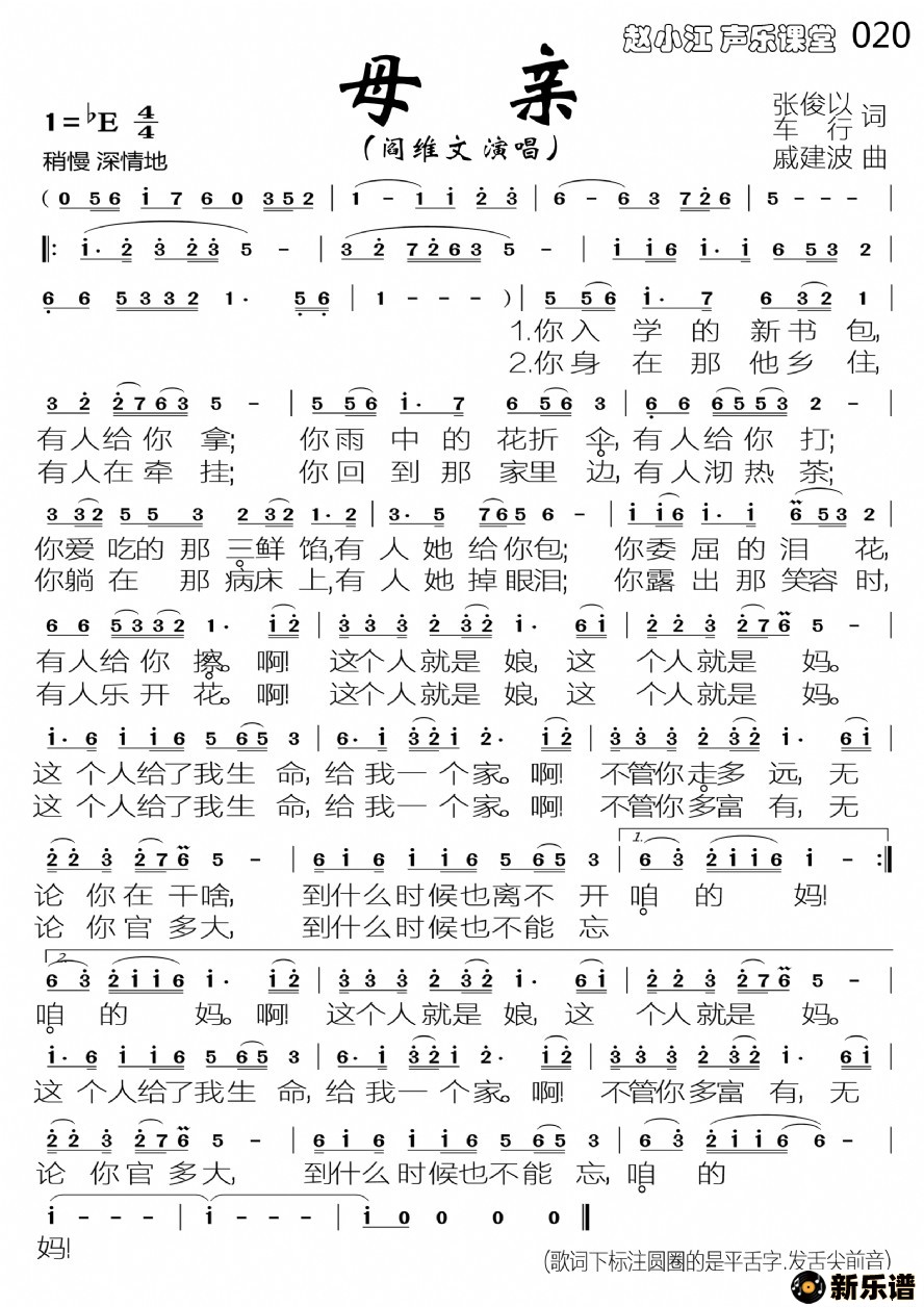 阎维文演唱的母亲歌词,母亲最新曲谱.
