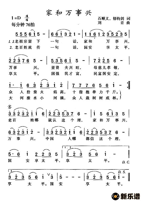 《家和万事兴》最新曲谱 郁钧剑、张也