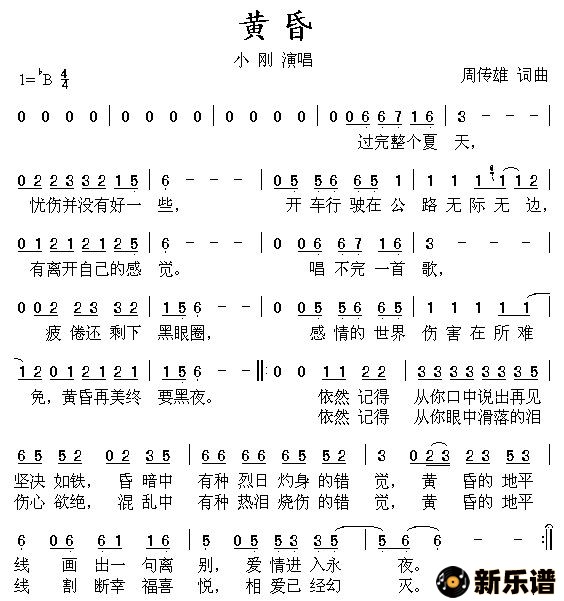小刚演唱的黄昏歌词,黄昏最新曲谱.