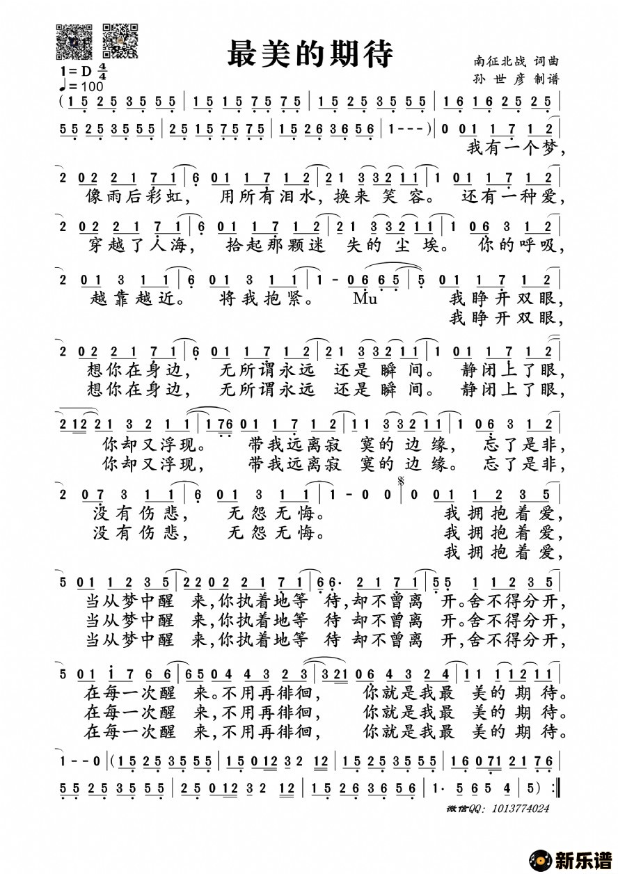 《最美的期待》最新曲谱 周笔畅-孙世彦制谱