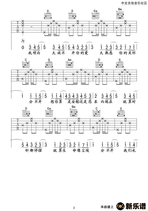 《如果没有你》吉他谱g调入门版 高音教编配 猴哥吉他教学吉他谱