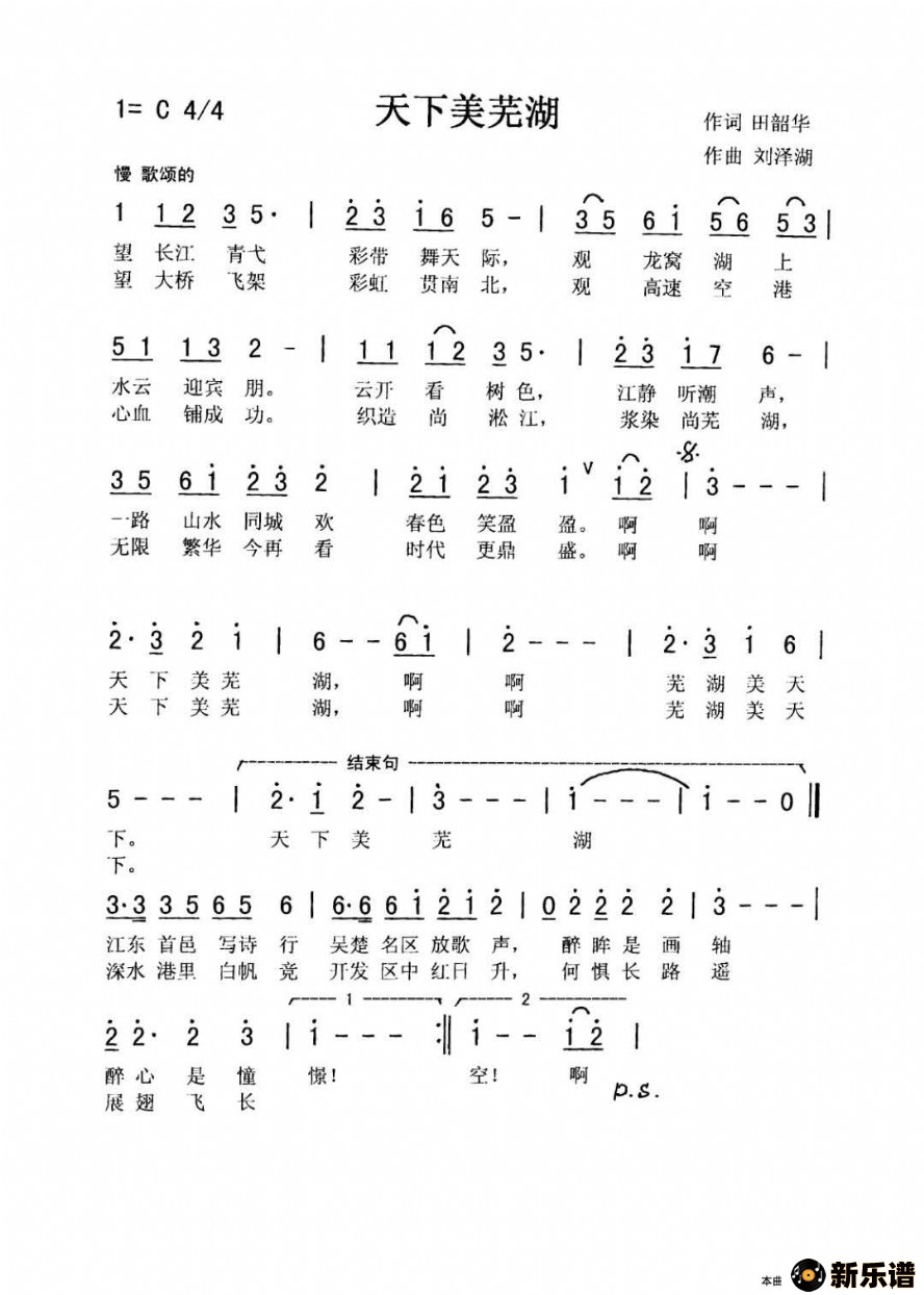 > 天下美芜湖最新曲谱