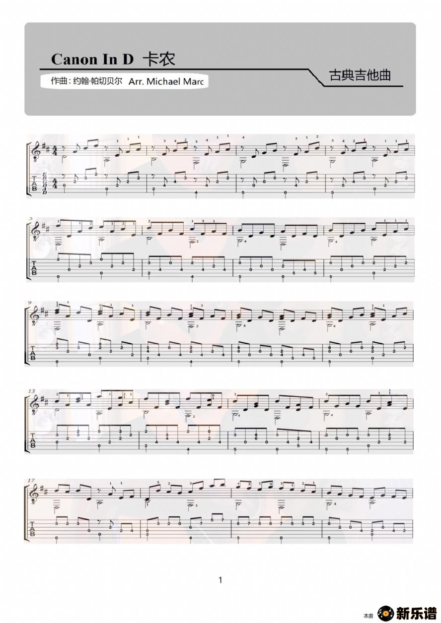 > 卡农最新曲谱
