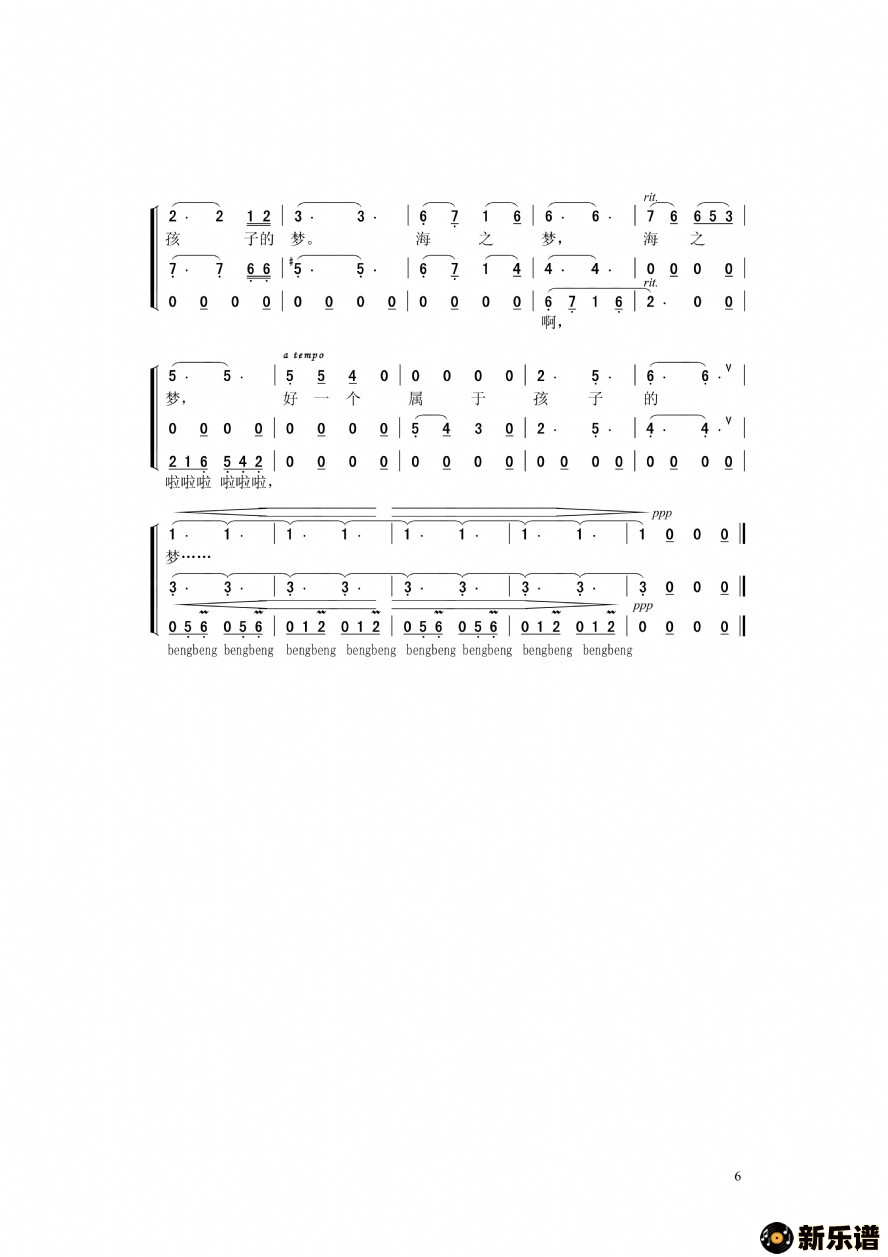 江书越等演唱的海之梦歌词,海之梦最新曲谱.