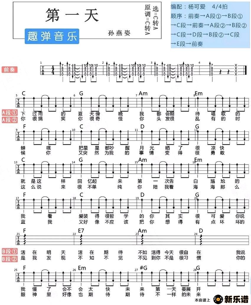 孙燕姿演唱的第一天歌词,第一天最新曲谱.