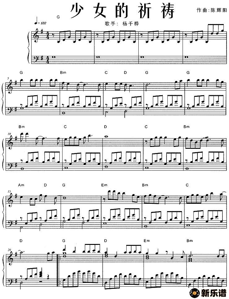 杨千桦演唱的少女的祈祷歌词,少女的祈祷最新曲谱.
