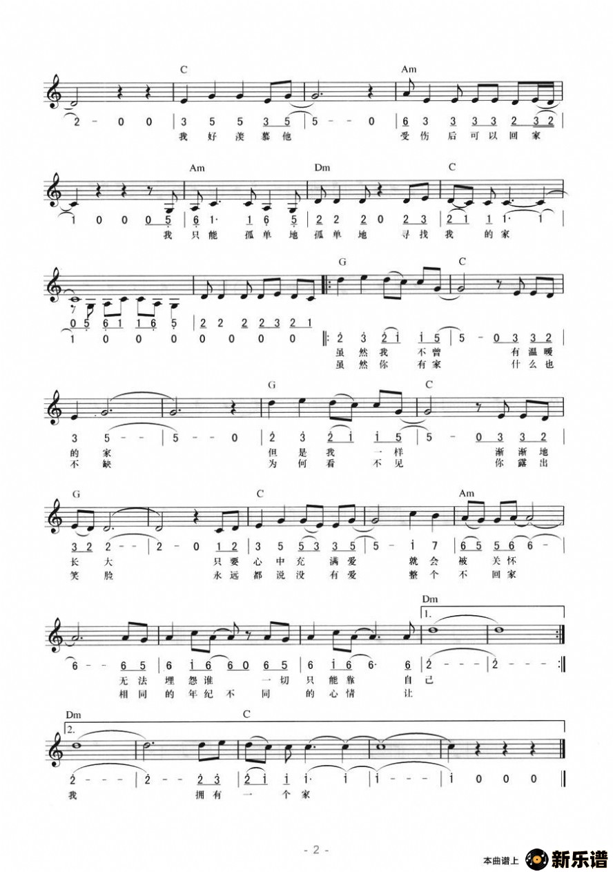 我想有个家(电影《把爱找回》片尾曲)最新曲谱