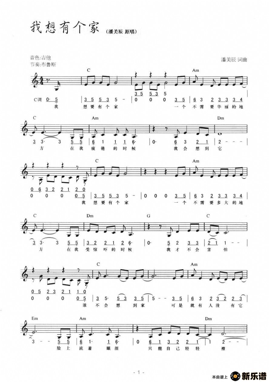 潘美辰演唱的我想有个家歌词,我想有个家最新曲谱.