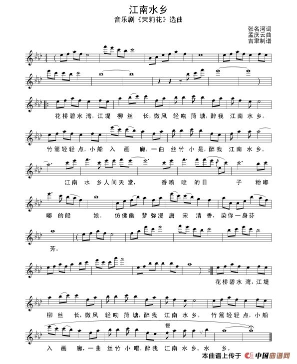 > 江南水乡最新曲谱