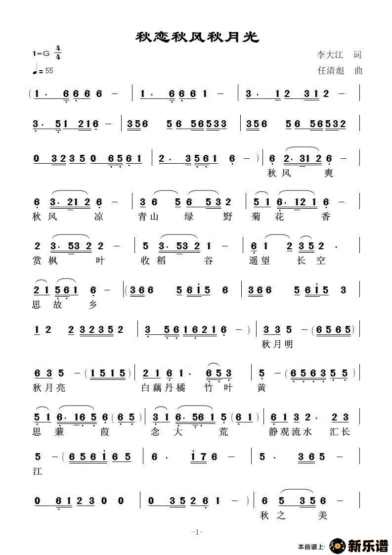 演唱的秋恋秋风秋月光歌词,秋恋秋风秋月光最新曲谱.