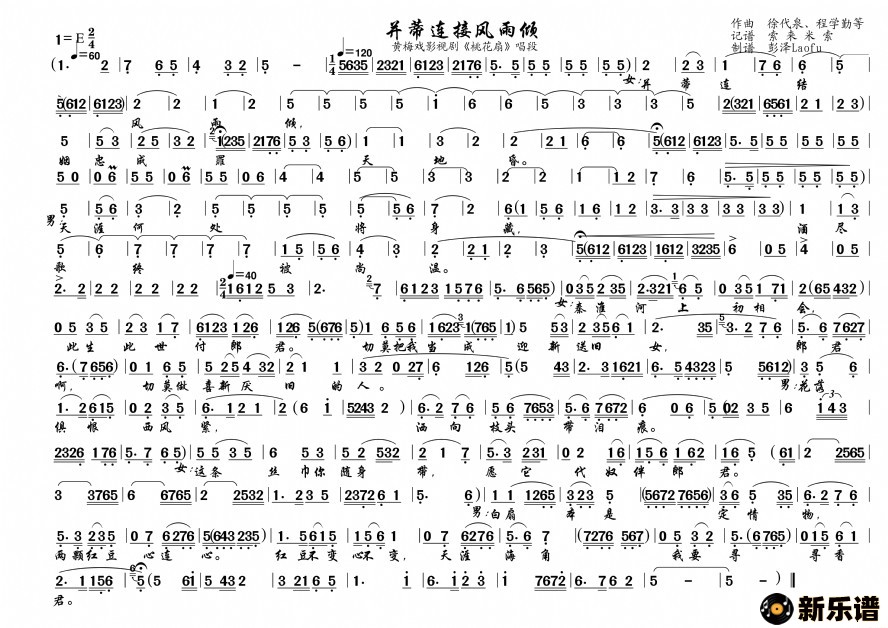 并蒂连接风雨倾/韩再芬 黄新德 桃花扇 相关曲谱