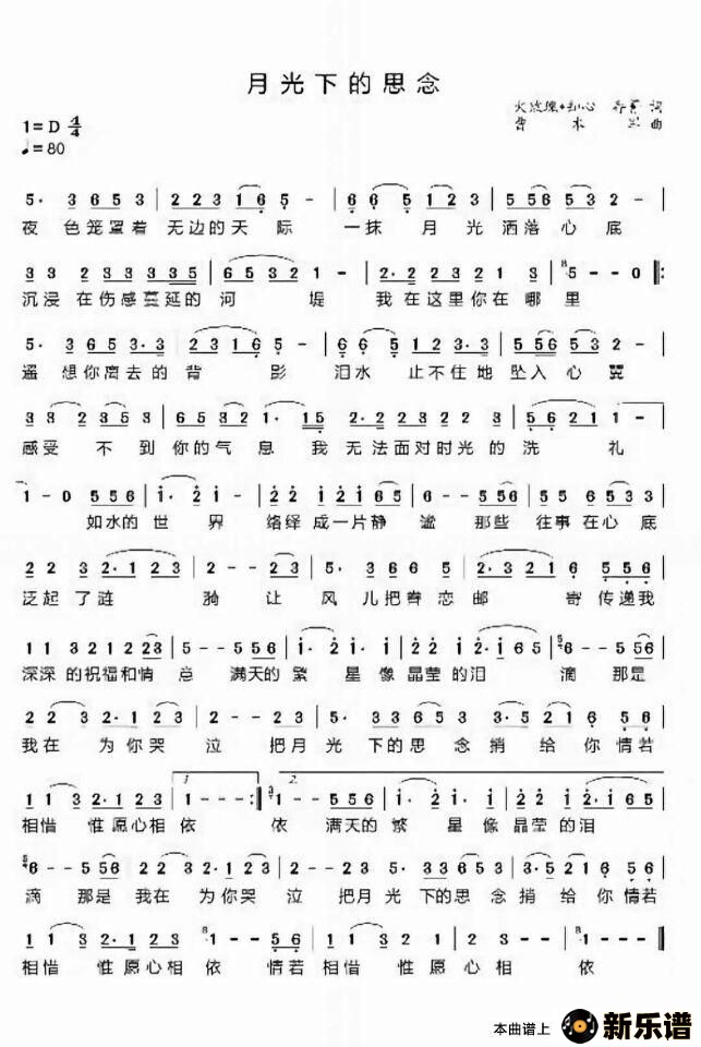 风语(刘星红)演唱的月光下的思念歌词,月光下的思念最新曲谱.