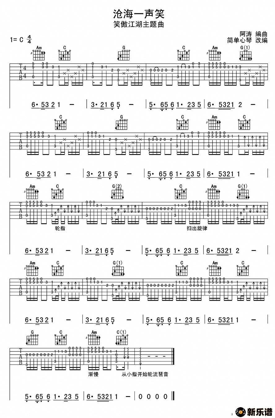 许冠杰演唱的沧海一声笑歌词,沧海一声笑最新曲谱.