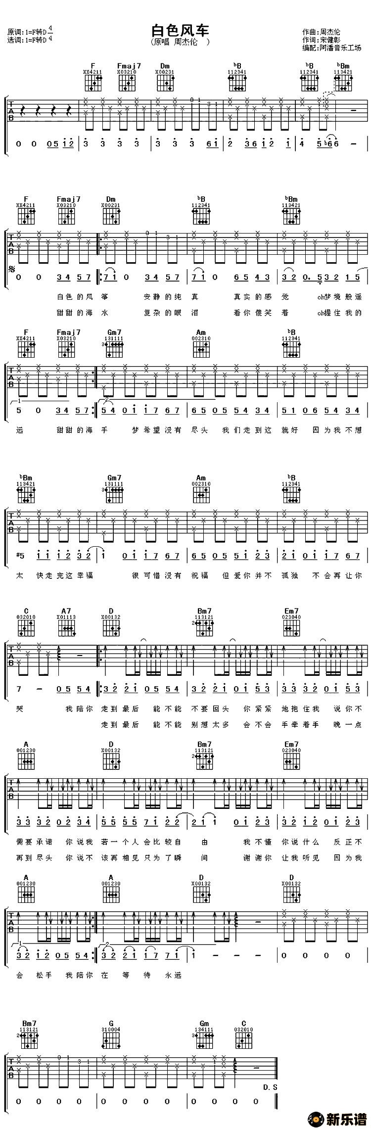 周杰伦演唱的白色风车歌词,白色风车最新曲谱.