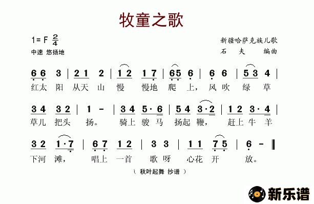 演唱的牧童之歌歌词,牧童之歌最新曲谱.