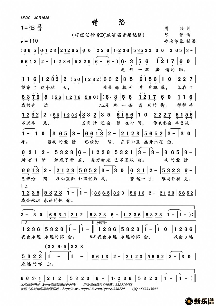 《情陷》最新曲谱 任妙音-岭南印象制谱