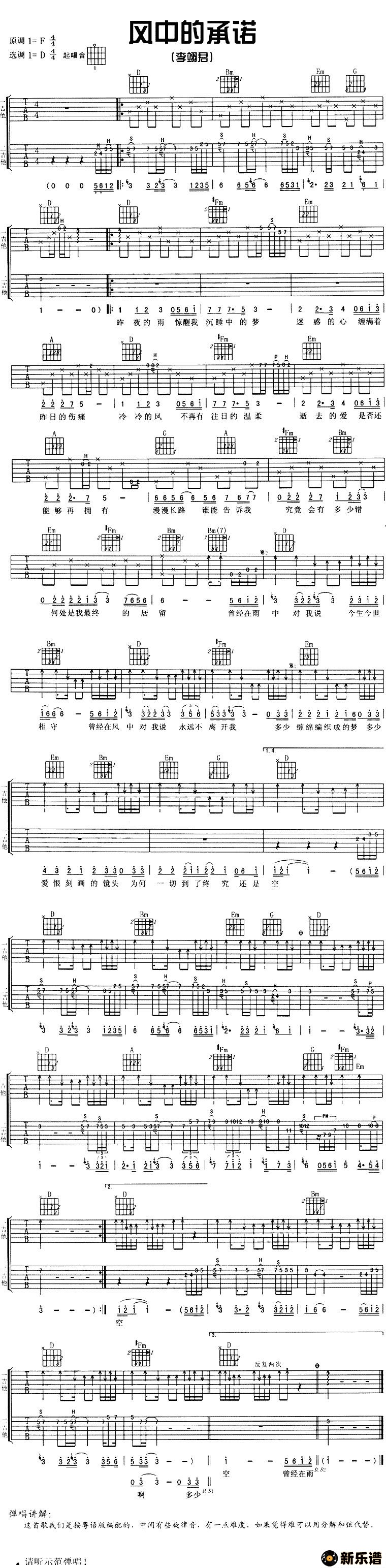 《风中的承诺》最新曲谱 李翊君