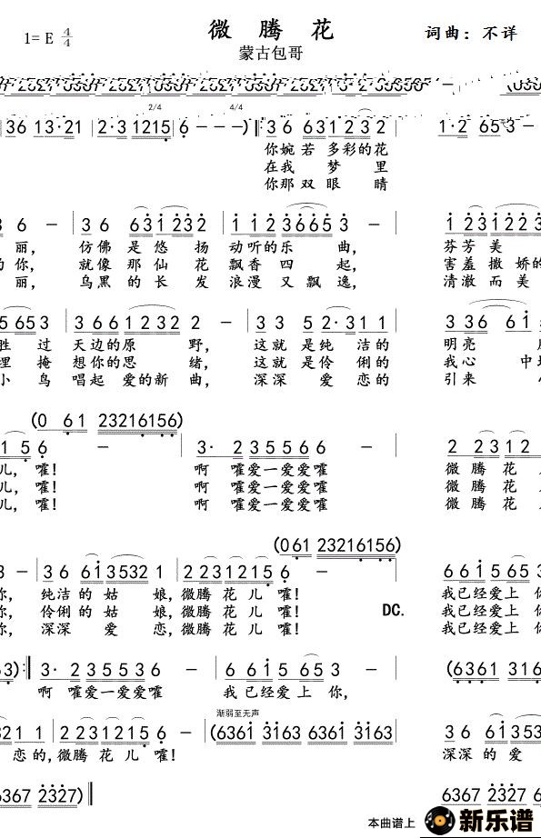 《微腾花(蒙古包哥)》最新曲谱 蒙古包哥
