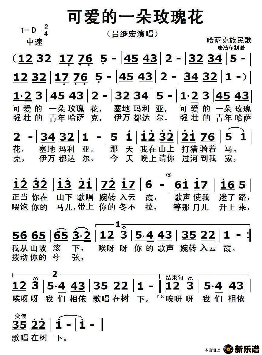 《可爱的一朵玫瑰花》最新曲谱 吕继宏