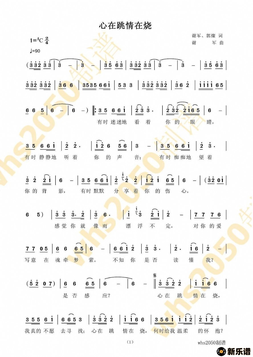 谢军演唱的心在跳情在烧歌词,心在跳情在烧最新曲谱.