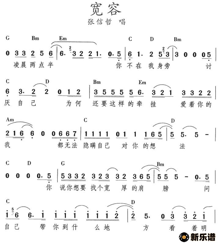 张信哲演唱的宽容歌词,宽容最新曲谱.