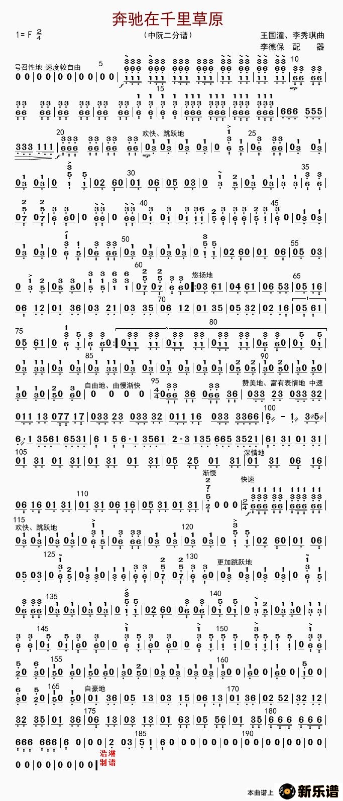 奔驰在千里草原最新曲谱