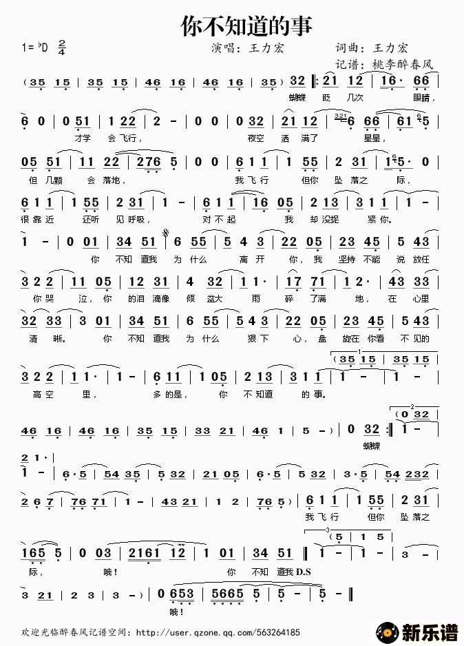 《你不知道的事》最新曲谱 王力宏-桃李醉春风制谱