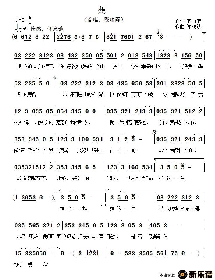 作词:蒋雨晴 作曲:谢铁跃(蒋雨晴词 谢铁跃曲)