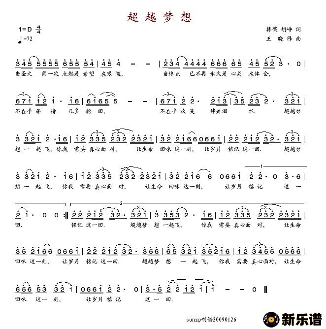 汪正正演唱的超越梦想歌词,超越梦想最新曲谱.