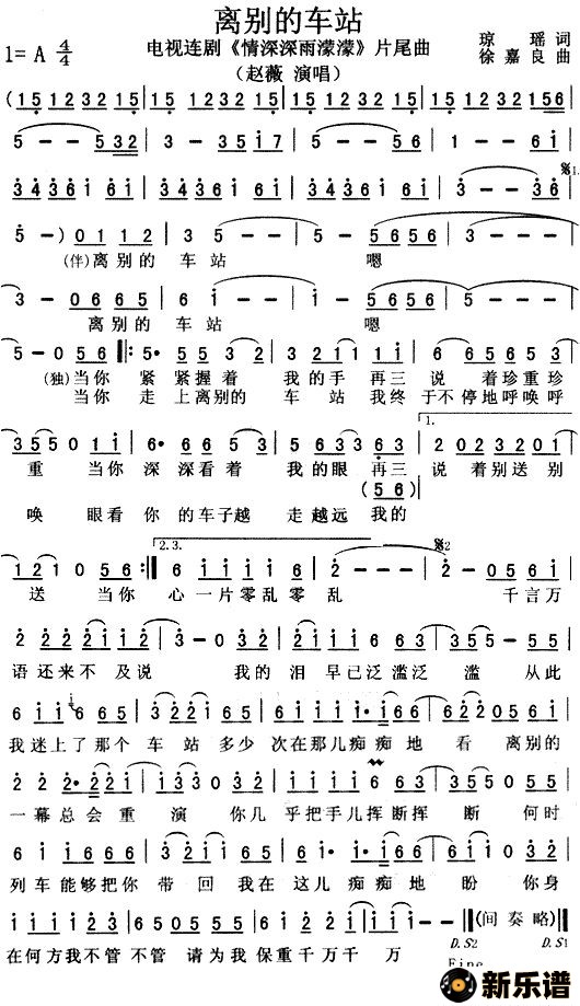 《离别的车站(电视剧《情深深雨濛濛》片尾曲)》最新曲谱 赵薇