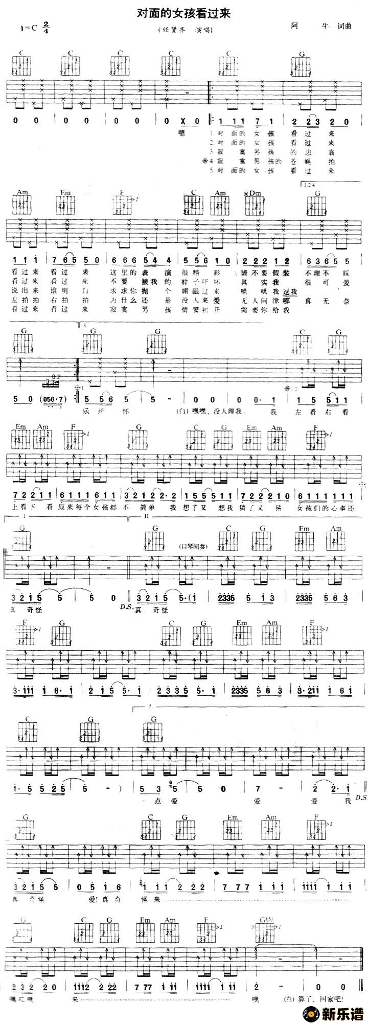 任贤齐演唱的对面的女孩看过来歌词,对面的女孩看过来最新曲谱.