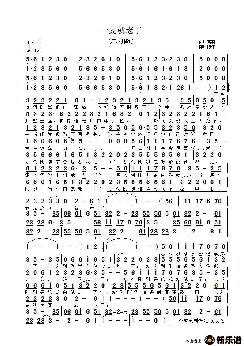 秋裤大叔演唱的一晃就老了歌词,一晃就老了最新曲谱.