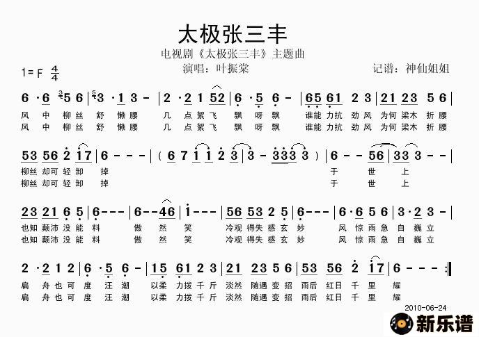 叶振棠演唱的太极张三丰(电视剧《太极张三丰》主题曲)歌词,太极张三丰(电视剧《太极张三丰》主题曲)最新曲谱.