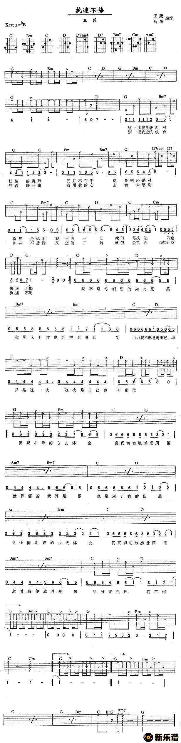 王菲演唱的执迷不悔歌词,执迷不悔最新曲谱.