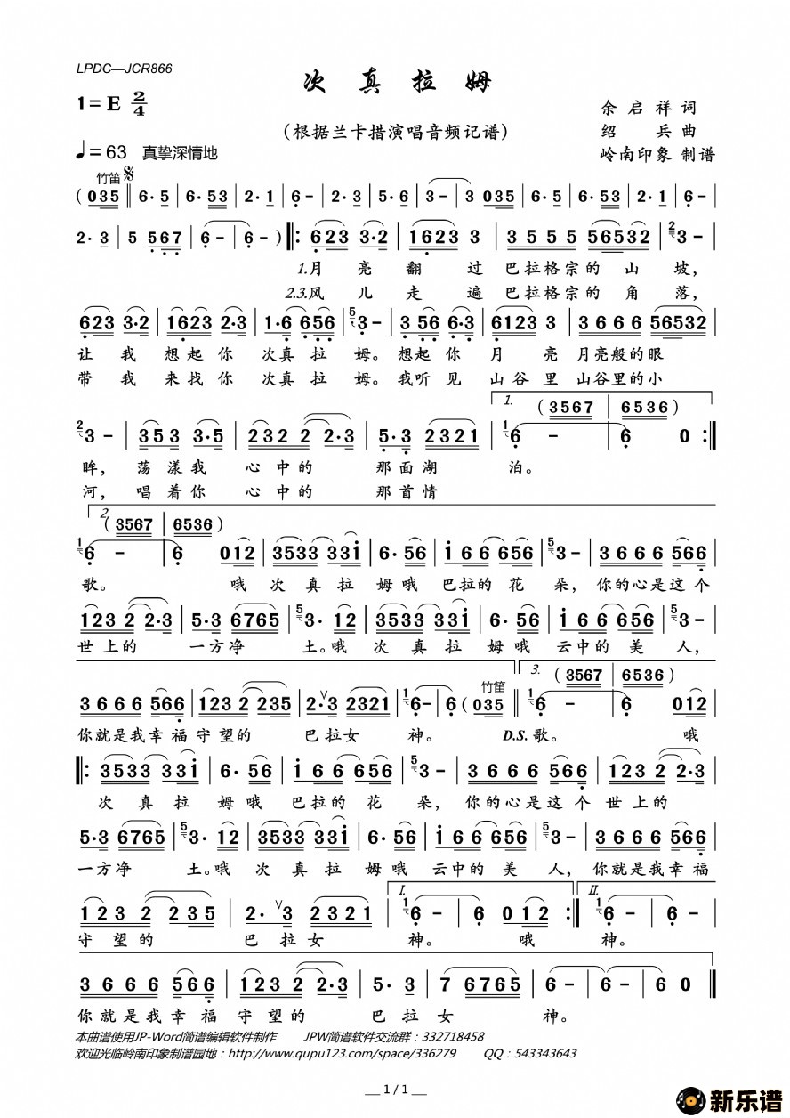 《次真拉姆》最新曲谱 兰卡措-岭南印象制谱