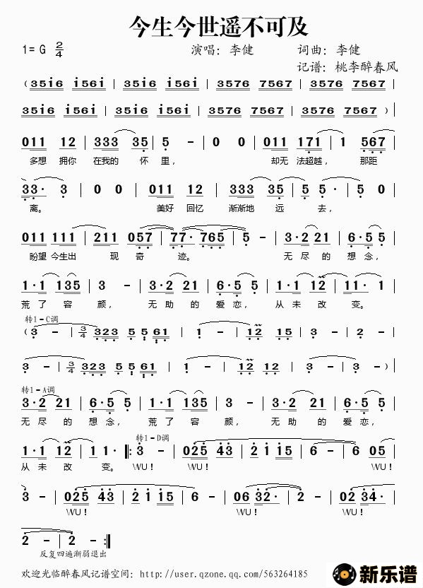 《今生今世遥不可及》最新曲谱 李健-桃李醉春风制谱