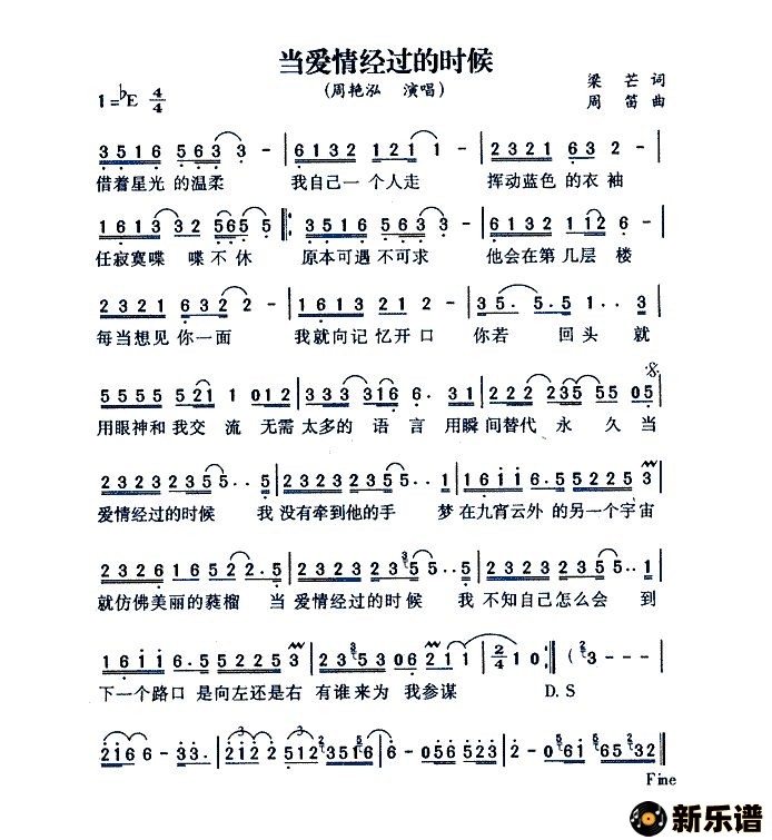 周艳泓演唱的当爱情经过的时候歌词,当爱情经过的时候最新曲谱.
