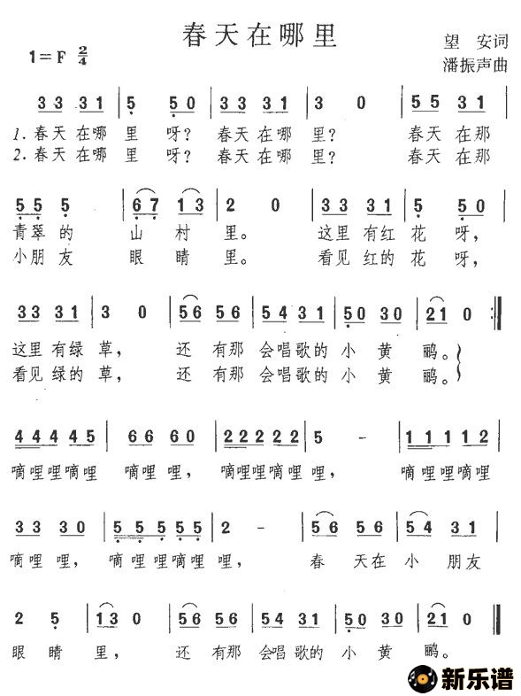 演唱的春天在哪里歌词,春天在哪里最新曲谱.