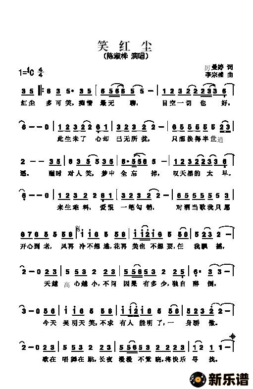 陈淑桦演唱的笑红尘歌词,笑红尘最新曲谱.